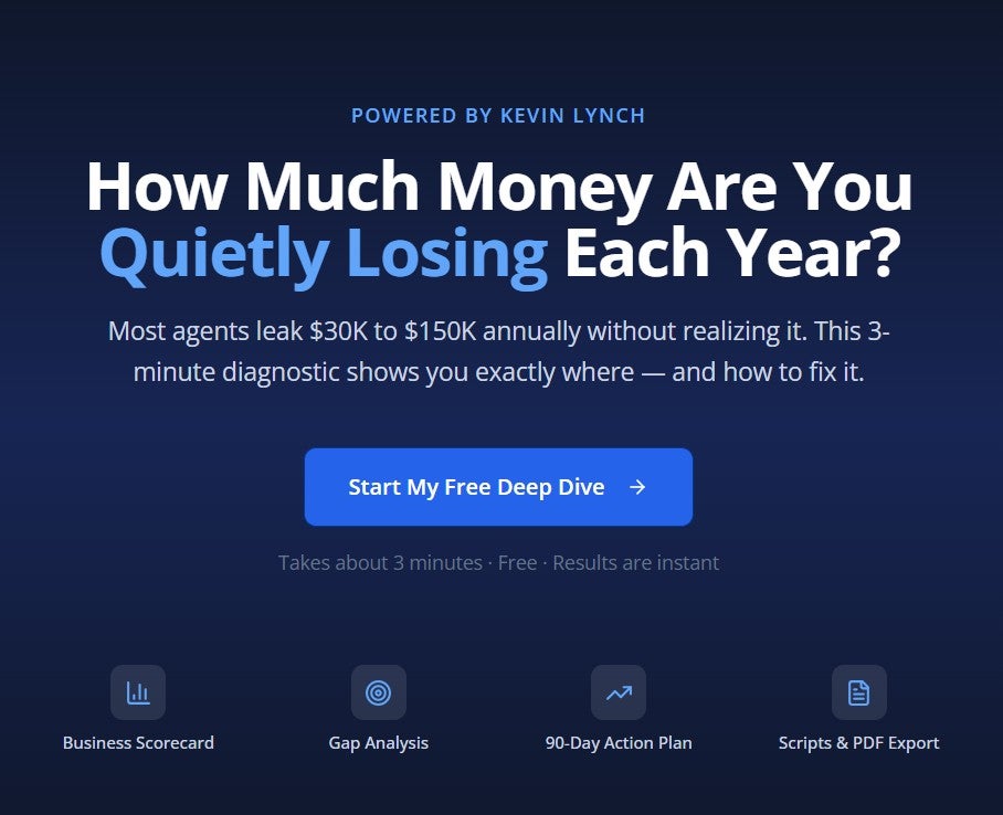 Once finished, you'll learn how to improve your business based on your personal objectives and see where the gaps and opportunities lie. Plus you'll be able to stop the cash bleed that most agents experience.